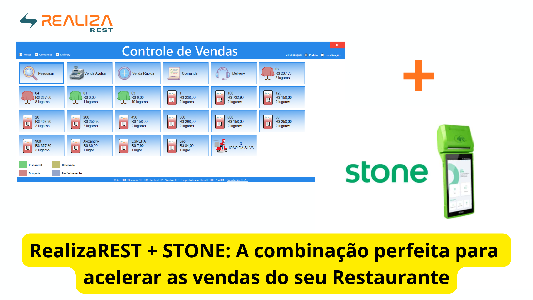 RealizaPDV + Mesas/Comandas + Stone A combinação perfeita para acelerar as vendas do seu restaurante.…
