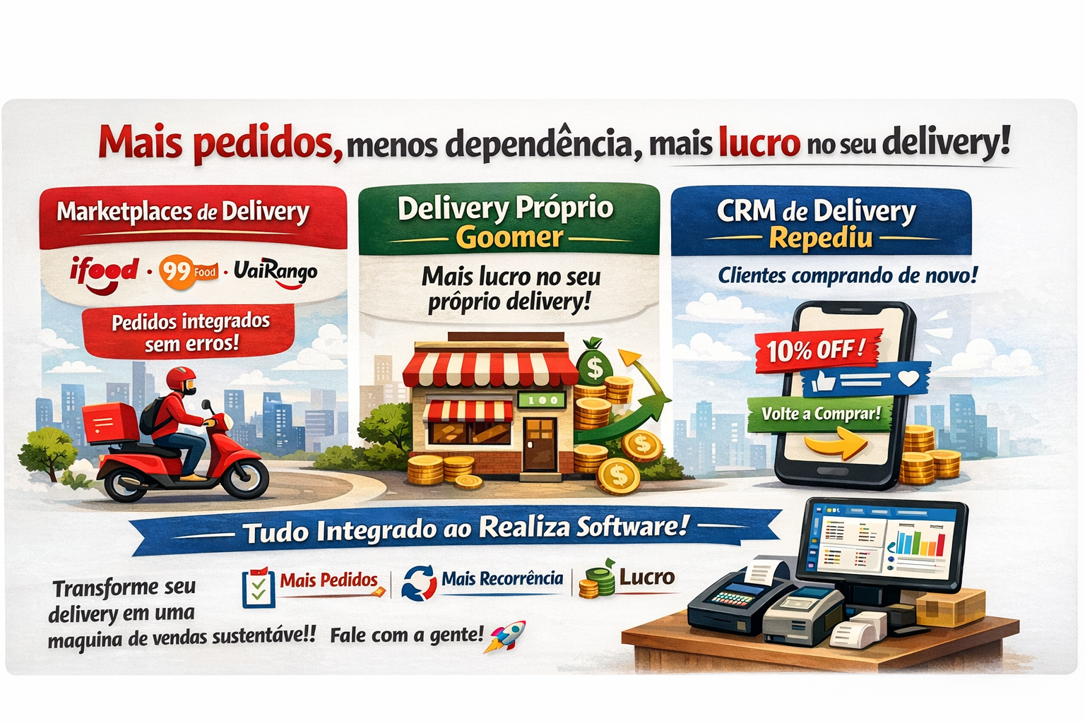 Integração com o Goomer: delivery próprio do restaurante, integrado à gestão Realiza Ter delivery próprio…