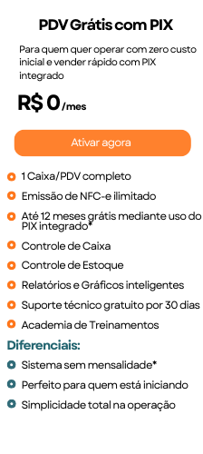 - Bônus via PIX: +500 transações/mês = PDV isento de mensalidade por 1 ano!