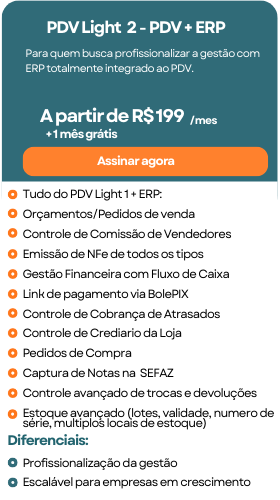 - PDV Light 2 (PDV + ERP): De R$ 299,00 por R$ 199,00